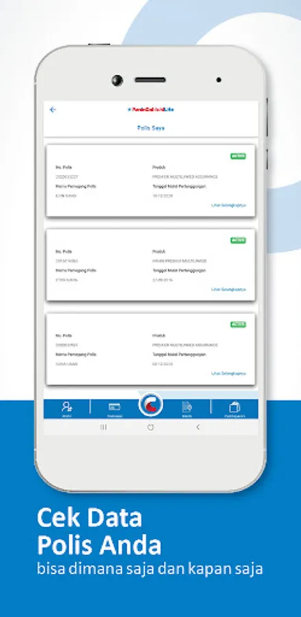 • Temukan informasi manfaat perlindungan Anda dan berbagai informasi polis.
