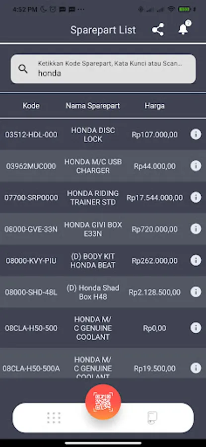 BengkelKita provides the most complete price information for motorcycle spare parts with excellent features that make it easier for you, such as: