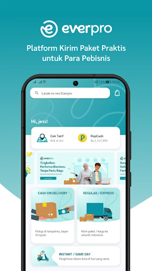 Everpro adalah platform yang menyediakan solusi untuk para pebisnis online untuk meraih kemudahan melalui layanan pengiriman serba mudah dan murah.