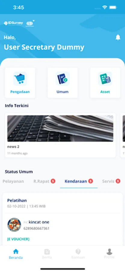 PUAS is an integrated application in terms of services provided by the Asset Management Division for PTSI employees. Available features include the facility service section, meeting room loans, procurement and assets.