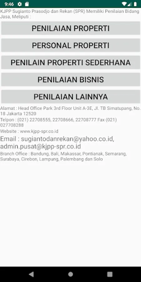 This Application Is an Internal System of the Public Appraisal Service Office Sugianto Prasodjo and Partners (KJPP SPR), a System that can only be used by and for KJPP SPR employees, in this system there is information about us, for Guest to be introduced about KJPP SPR and our portfolio.