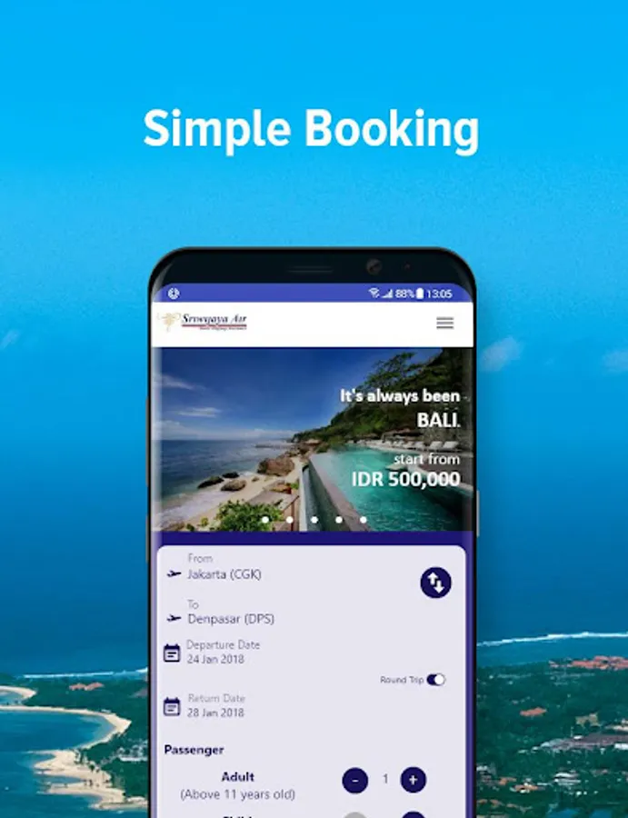 Sriwijaya Air Mobile App notifies you real time flight and hotel special promotions. Never miss any deals again with our Mobile App.
