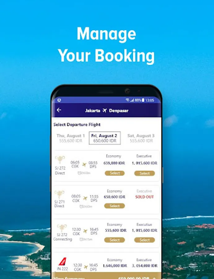 Search for flights to over 60 destinations around Indonesia and International. With improved features to complete your entire booking through the Mobile App.