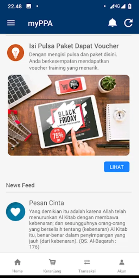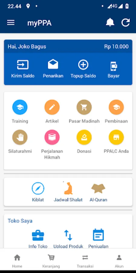 This application can make it easy for you to access training packages and Umrah at PPA. You can order PPA training / Umrah through this application. This application is also equipped with a series of sophisticated applications that make it easy for you to worship such as the Prayer Schedule, Al-Quran and Qibla direction. Besides this application features Marketplace where you can shop for your needs, and also top up Credit and Internet Data Packages. So this is an All In One Application that can meet your daily needs.