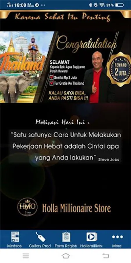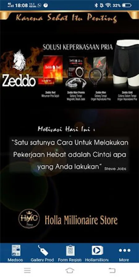 Holla Millionaire Store is a supporting application in product distribution and HMC network development.