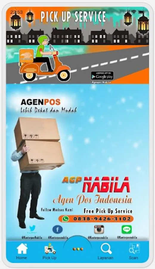 Agepos Nabila, is an application to help Agenpos Indonesia agency activities, especially Agenpos Nabila in serving customers. With the service features provided in an android application.