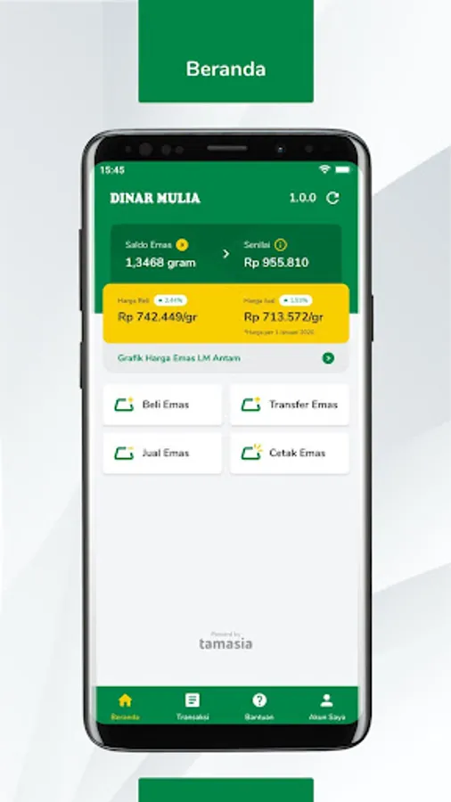 The Dinar Mulia application product is the result of co-branding in collaboration with Tamasia which is managed and operated by