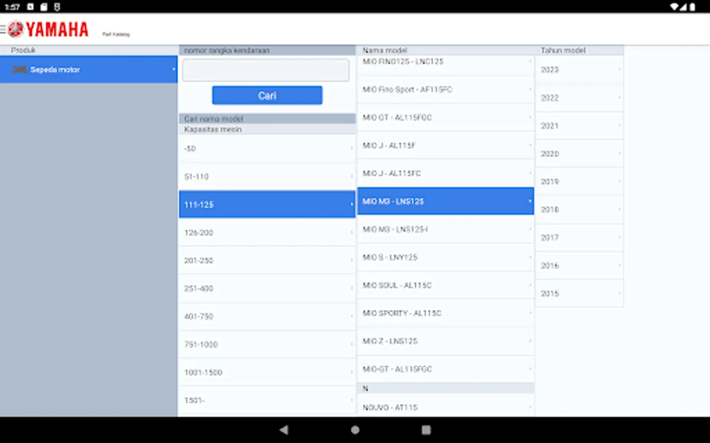 Parts catalogues for products sold in Indonesian by Yamaha Motor Corporation can be viewed.