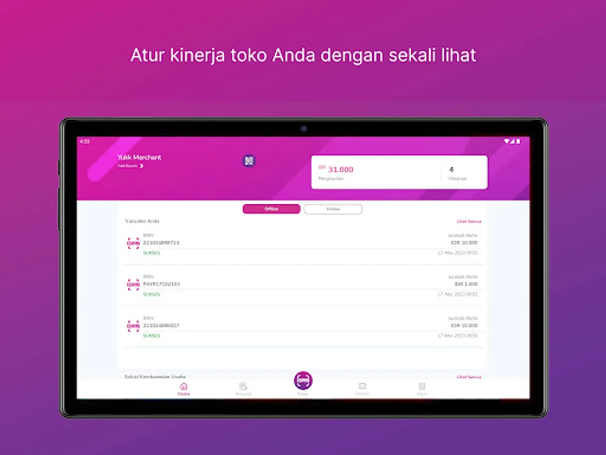 YUKK Merchant is an application that help business owners to handle their business with super easy and simple way. YUKK Merchant will enable merchants to manage and develop their business in a simple yet clean dashboard!