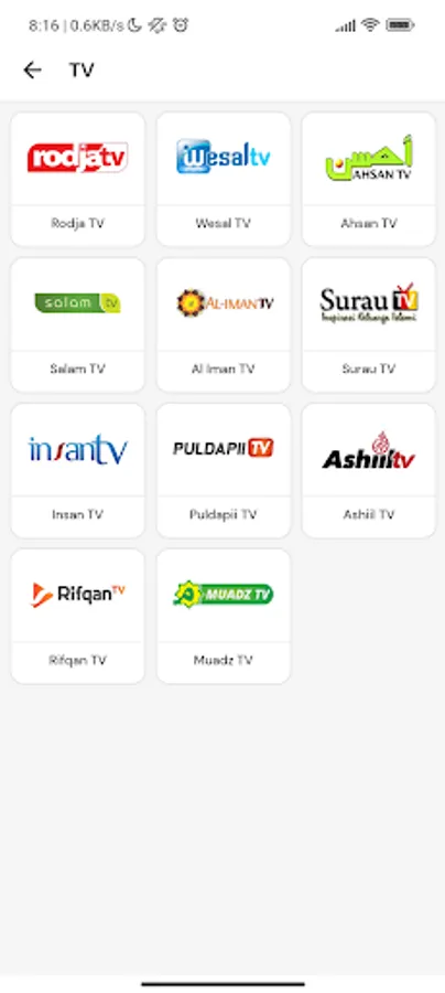 Streaming Rodja TV, Wesal TV, Ashiil TV and other Islamic TV.