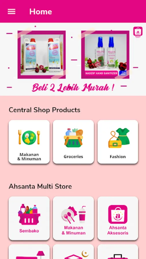 Ahsanta Multi Store merupakan solusi belanja secara mudah, halal, dan barokah. Ahsanta menyediakan berbagai kebutuhan harian anda mulai dari makanan, minuman, sembako, perlengkapan rumah tangga, fashion, penunjang kesehatan, hingga oleh-oleh haji dan umrah.