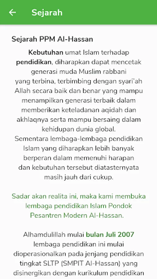 Pondok Pesantren Modern Al-Hassan hadir guna memenuhi kebutuhan umat Islam terhadap pendidikan, diharapkan dapat mencetak generasi muda Muslim rabbani yang terbina, terbimbing dengan syari’ah Allah secara baik dan benar yang mampu menampilkan generasi terbaik dalam memberikan keteladanan aqidah dan akhlaqnya serta mampu bersaing dalam kehidupan dunia global.