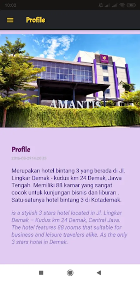 AMANTIS HOTEL is a stylish 3 stars hotel located in Jl. Lingkar Demak – Kudus km 24 Demak, Central Java. The hotel features 88 rooms that suitable for business and leisure travelers alike. As the only 3 stars hotel in Demak.