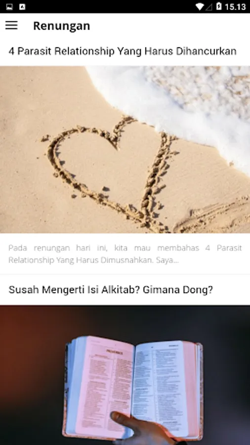 Akan ada renungan dalam bentuk tulisan setiap harinya untuk menguatkanmu dalam menjalani hari-harimu.