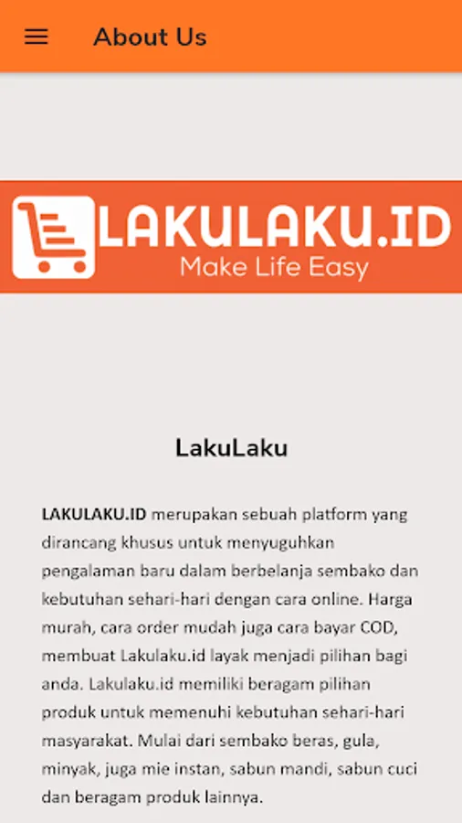 Lakulaku.id merupakan sebuah platform yang dirancang khusus untuk menyuguhkan pengalaman baru dalam berbelanja sembako dan kebutuhan sehari-hari dengan cara online. Harga murah, cara order mudah juga cara bayar COD, membuat Lakulaku.id layak menjadi pilihan bagi anda. Lakulaku.id memiliki beragam pilihan produk untuk memenuhi kebutuhan sehari-hari masyarakat. Mulai dari sembako beras, gula, minyak, juga mie instan, sabun mandi, sabun cuci dan beragam produk lainnya.