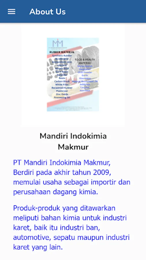 PT Mandiri Indokimia Makmur, Berdiri pada akhir tahun 2009, memulai usaha sebagai importir dan perusahaan dagang kimia.