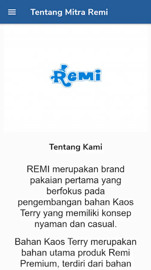 Remi adalah brand pakaian sehari-hari yang fokus pada bahan kaos terry dengan konsep nyaman dan casual sejak tahun 2010