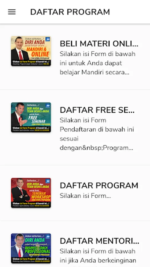 Anda dapat menemukan Video Tutorial, Seminar GRATIS, Pelatihan In-House, Masterclass Workshop dan materi online untuk Publik dan Perusahaan Anda dengan sangat mudah dalam Aplikasi ini.