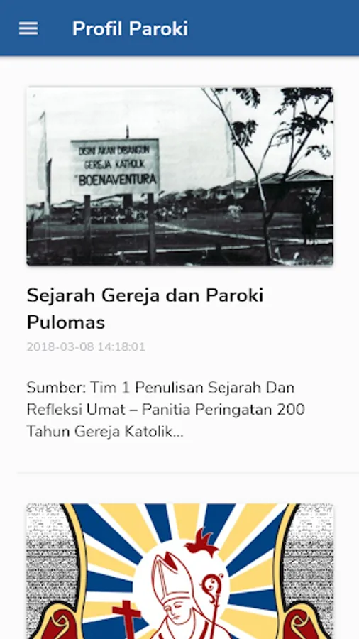 Gereja ST. Bonaventura, Paroki Pulomas adalah sebuah gereja berlokasi di Area Pulomas Jakarta Timur. Dengan Aplikasi ini akan memudahkan Umat di Paroki mengikuti perkembangan dan kegiatan serta jadwal-jadwal yang ditentukan oleh Gereja. Terima kasih sudah mengunduh Aplikasi ini, jangan lupa untuk selalu membaca segala berita dan hal yang disampaikan di dalam content yang tersedia. Tuhan Memberkati.