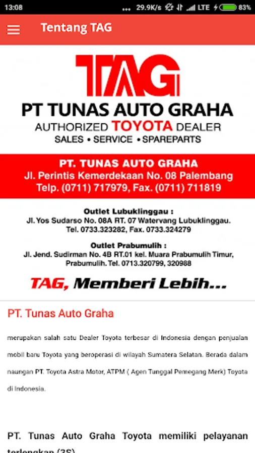 - Mempermudah anda untuk menemukan CABANG TAG dengan tersedianya Alamat Lengkap, No Telepon dan Jam Kerja