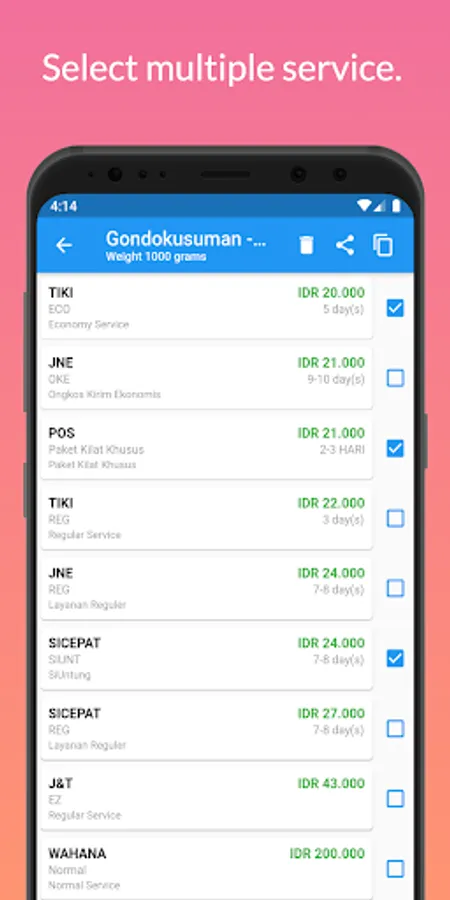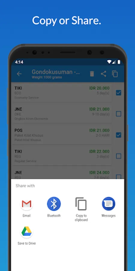 Cara mudah menyalin dan membagikan biaya ongkos kirim!