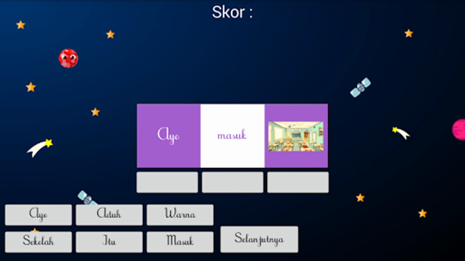 2. Arranging Sentences: This session is a game session to train reading comprehension and children's thinking ability to choose the correct answer according to the picture, at the end it will be given a score for the results of the composition of the sentences made.