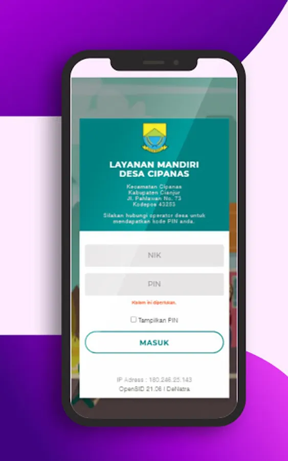 In this application, residents can also submit letters online, and as verification, residents can register their NIK and our staff will also provide a PIN as an access code.