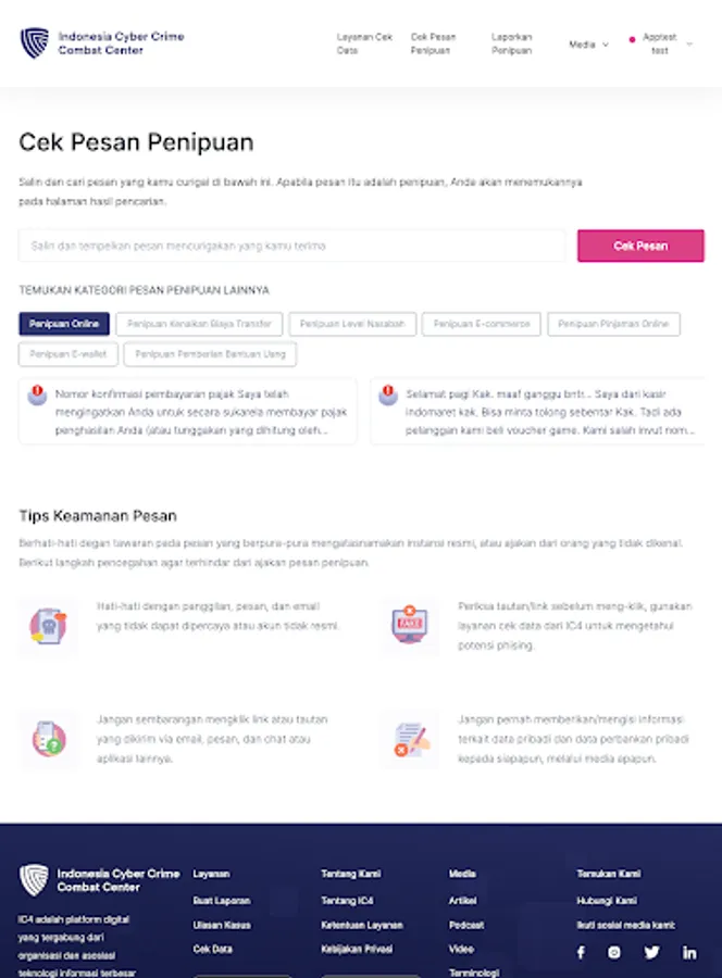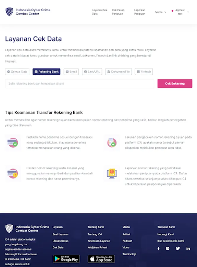 The Indonesia Cyber Crime Combat Center (IC4) is here to help the wider community prevent and tackle online crime or online fraud. Departing from a goal to help the wider community increase awareness and vigilance of internet crime and online fraud, which is increasingly happening, by making it easier for the wider community through technology to be able to access security checks (access to security checks) on their data. IC4 is present with an experienced and skilled team in cyber security, digital forensics, information technology security, research and journalism. IC4 is here for the wider community.