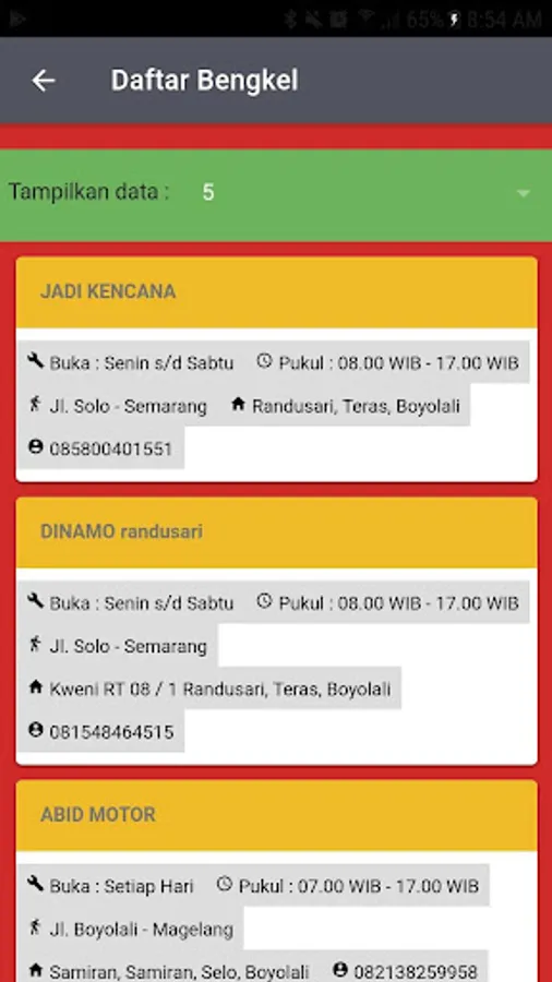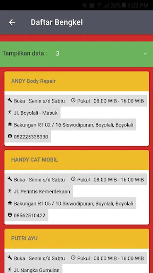Android-based application to get information about workshops in Boyolali district. The data collection was carried out by the Boyolali District Transportation Agency (Dishub).
