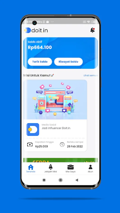 The Doitin app is a job platform to help you get an attractive paying job with several types of missions that you will complete in the Doitin app.