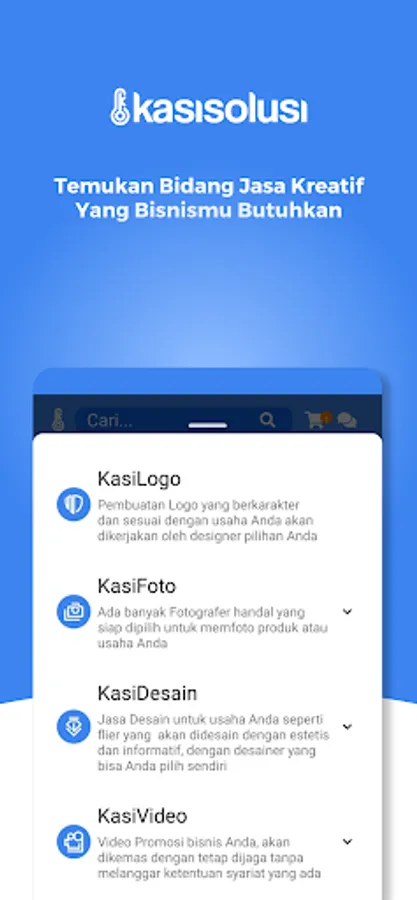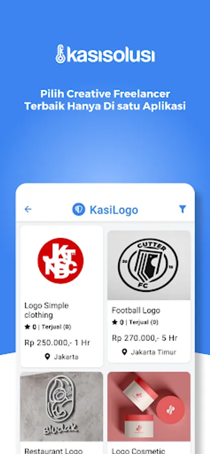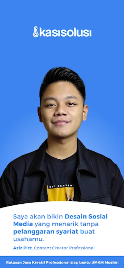 Kasisolution is the first Marketplace-based application in Indonesia that connects Muslim Entrepreneurs with Creative Freelancers throughout Indonesia, without worrying about violating the Shari'a. You can choose the services of thousands of creative workers spread throughout Indonesia.