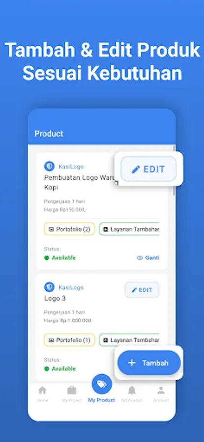 Kasisolution partner is an application specifically for kasiso application users who want to sell services in accordance with their professional abilities in the field of Digital Marketing support such as: Graphic Design, Videography, Photography & Logo Designer.