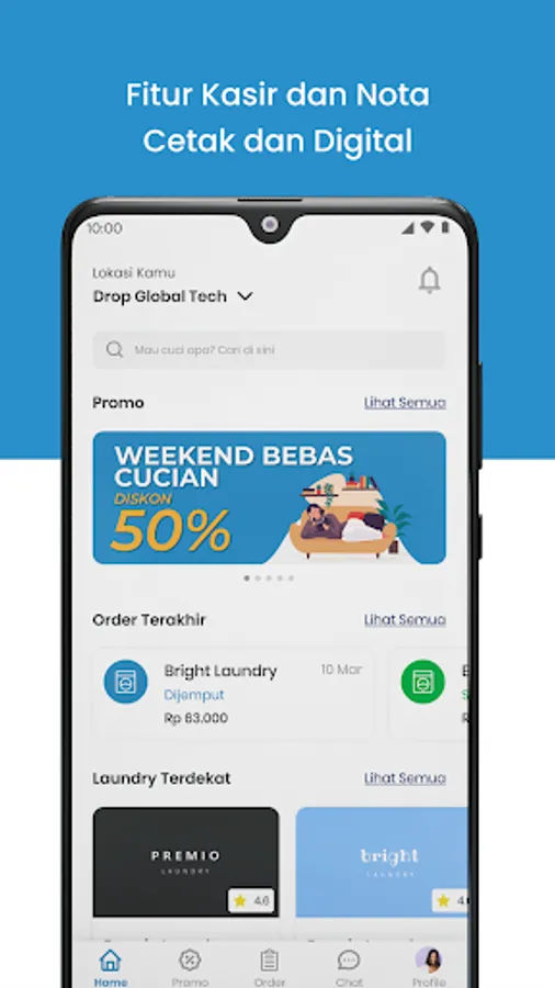 Application to order online laundry services on-demand from registered D-Laundry Merchant. Find the best online laundry options near you.