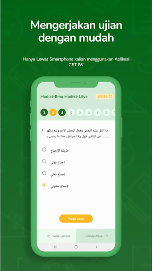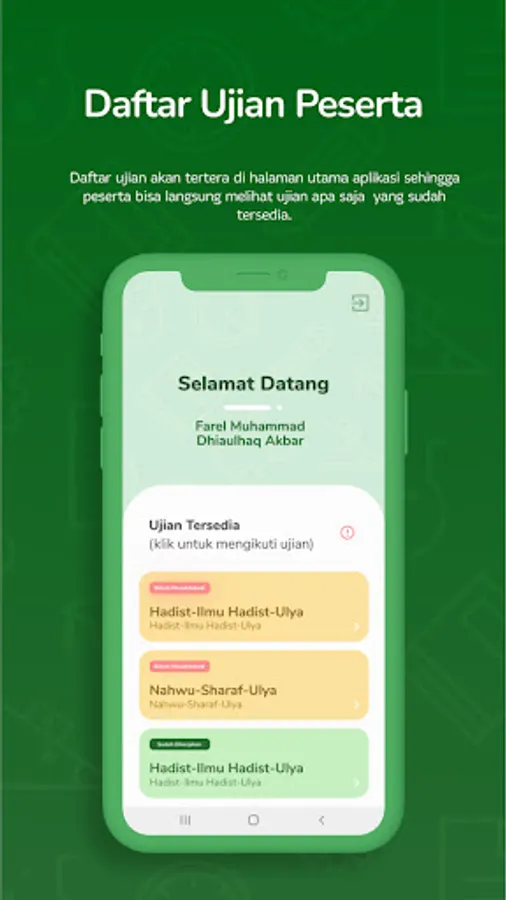 Aplikasi CBT PBSB memudahkan Peserta Tes dalam mengerjakan Ujian dari mana saja. memasukan Akun dan Password yang tertera di kartu tes peserta . daftar ujian akan tertera di halaman utama aplikasi sehingga peserta bisa langsung melihat ujian apa saja yang sudah tersedia.