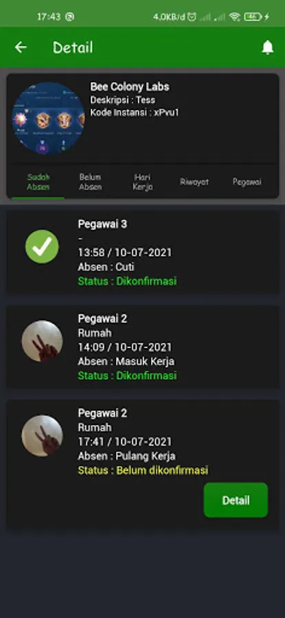 This application is useful for agencies that are currently still in work with the status of Work From Home (WFH), with this application your agency can monitor employee attendance online and in real time. Starting from the point of location where your employees work, hours of entry, photos of attendance and descriptions of what your employees do