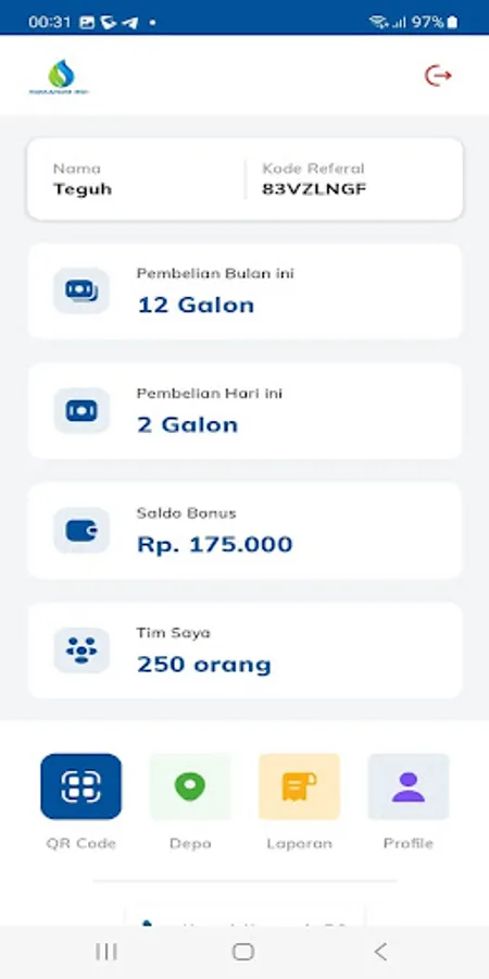 Aplikasi untuk User dalam pembelian air minum isi ulang pada depo