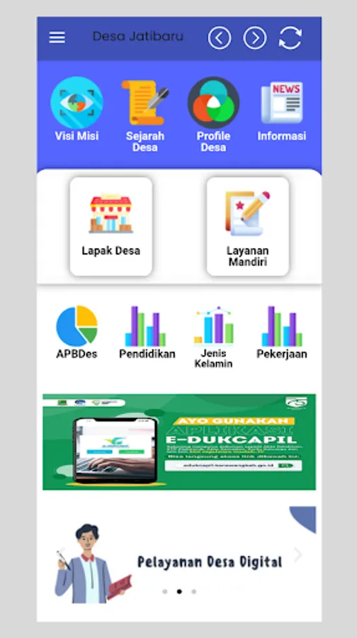 The Jatibaru Village application is to make it easier for Jatibaru villagers to obtain information about Jatibaru Village Government activities as well as to make it easier for village communities to provide online services through the Android application.