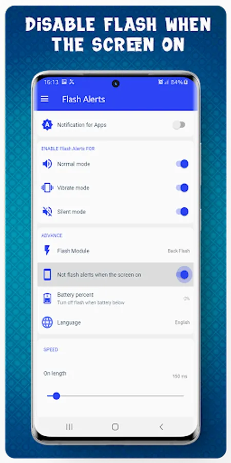 Blink Flash on call notifications, the app will allow you to blink the Mobile torch phone flashlight camera whenever you receive a phone flash call notifications or SMS text or other notifications. This feature of Flash on-call can increase the convenience of the user or help the user with a disability.