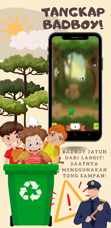 Badboy will fall from top to bottom, catch him with the trash can, and watch for 3 hearts on the top left of your screen.