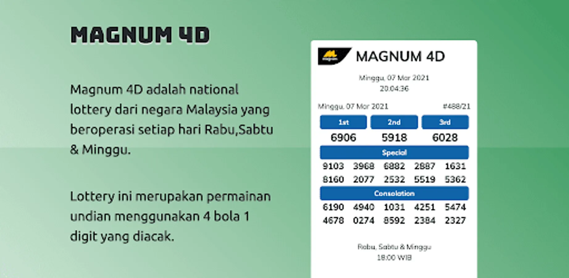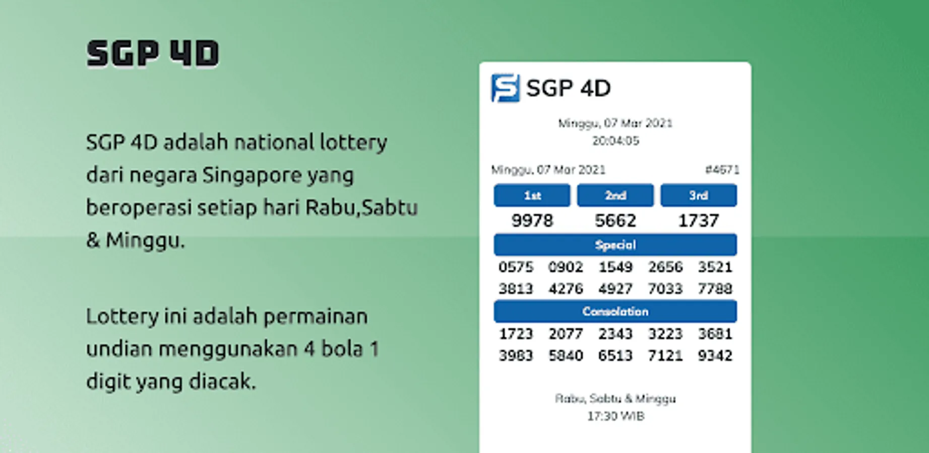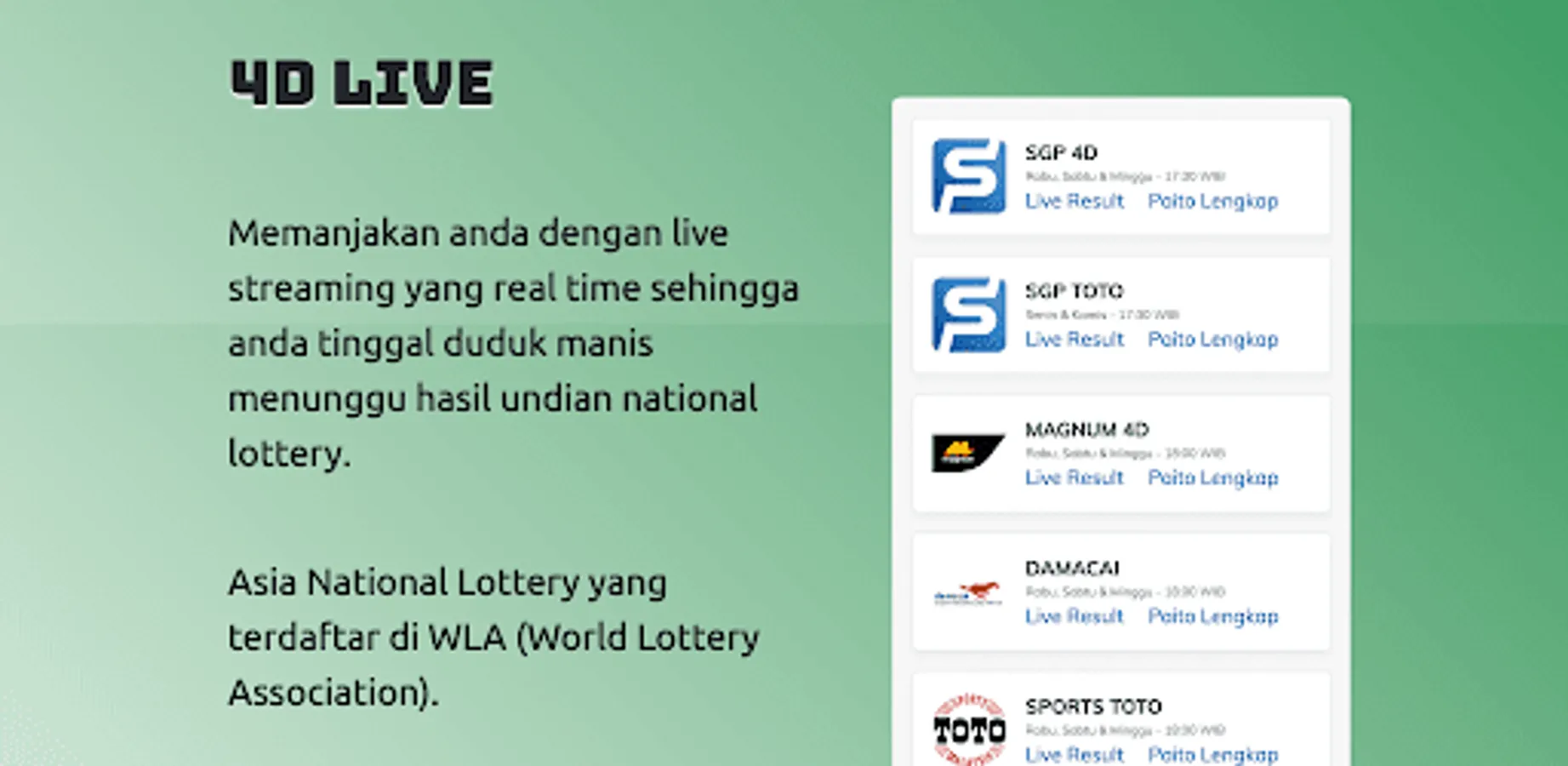 This application provides Live 4D national lottery output information.