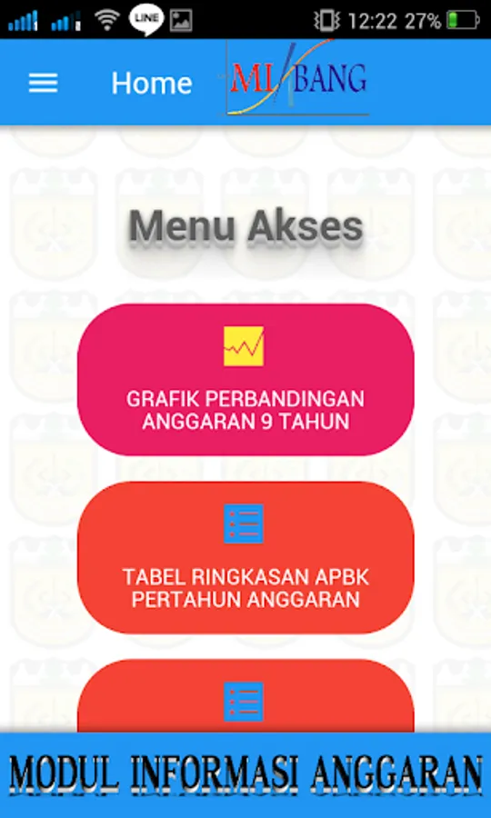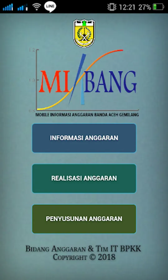 Mobile app Budget Information Banda Aceh Gemilang (MI ABANG) is an innovative Br Change projects Muhammad Salih, SE in PIM IV following the 2018 First Batch of Banda Aceh. This application has the mission of "presenting budget information in the hands anytime and anywhere", consists of three main modules: