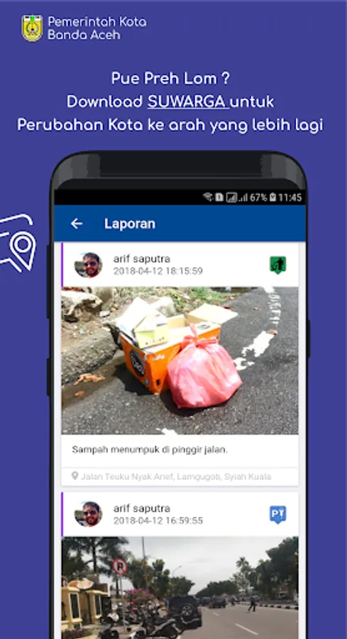 SUWARGA is a place for citizens and governments to interact with each other. This container can be used by citizens to provide aspirations and provide various reports of events that occur in the field quickly and easily.