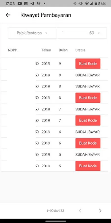 The 10 (ten) types of taxes that can be registered in the online tax include: