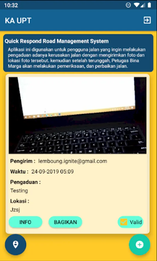 This application is intended for the Head of the Technical Implementation Unit to validate public complaints and view survey results