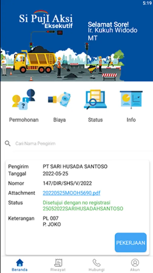 SIPUJIAKSI Executive functions to monitor service requests for testing at UPT. Construction Testing Laboratory of the Public Works Department of Highways, East Java Province