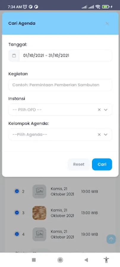 Applications that are used to view the agenda held in the West Kalimantan government environment
