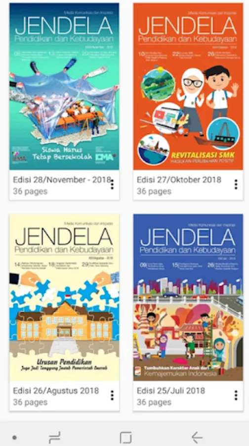 JENDELA is a magazine published by the Ministry of Education and Culture (Kemendikbud) that presents themes regarding Ministry policies. JENDELA is present to meet the needs of stakeholders in the education and culture sectors in terms of policy information carried out by the Ministry of Education and Culture. In each issue of the edition, JENDELA presents a number of fixed rubrics, including FOCUS which reviews the latest policies, BOOKSI RESENSES which contain a brief review of one of the book collections in the Ministry of Education and Culture Library, and the KEBUDAYAAN rubric that presents policies and activities carried out in the cultural field. Articles are packaged in light language, accompanied by interesting infographics, which are expected to be able to better give understanding to the reader. Get information on the latest Ministry of Education and Culture policies through JENDELA with just a tap.