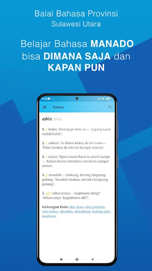 This application is a Manado Malay dictionary that helps us to recognize words in the Manado regional language in Indonesian definitions.