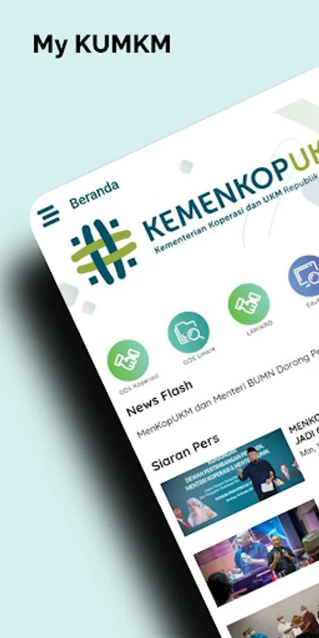 The Ministry of Cooperatives and Small and Medium Enterprises launched a mobile-based application called My KUMKM to make it easier for us to always update information related to the Ministry of Cooperatives and SMEs and other interesting news.