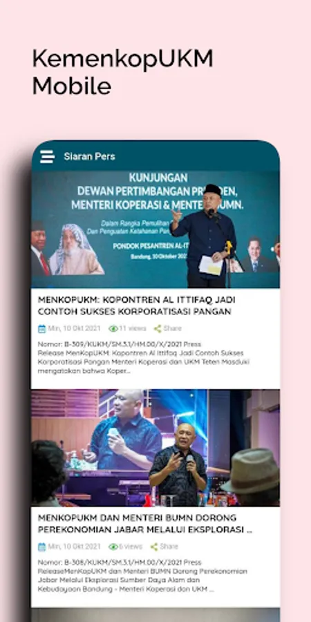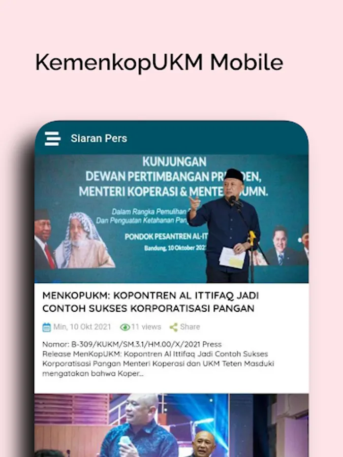 Can share news / other interesting information to social media networks for our relatives or family to participate in updating information related to the latest KemenkopUKM.